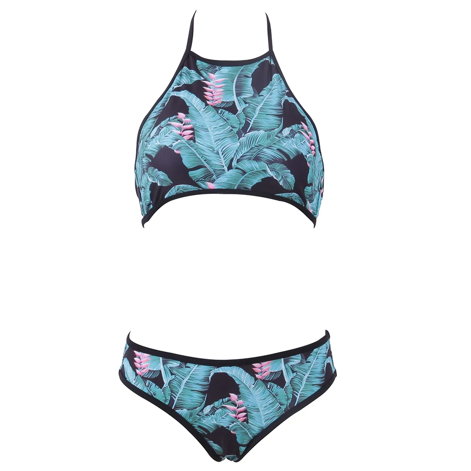 Promo NAKIAEOI Sexy High Neck Bikini 2019 Swimwear Women Swimsuit Print Green Halter Top Brazilian Bikini