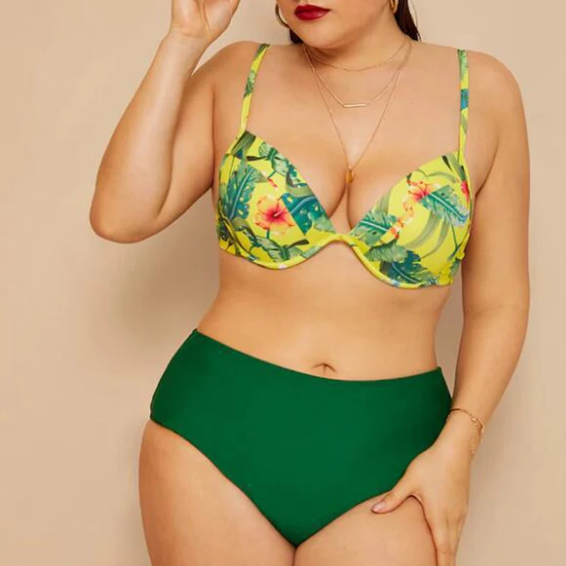 Cheap Plus Size Underwire Push Up Bikini High Waist Swimsuit Women Large Sizes Swimwear Sexy Bathing Suit